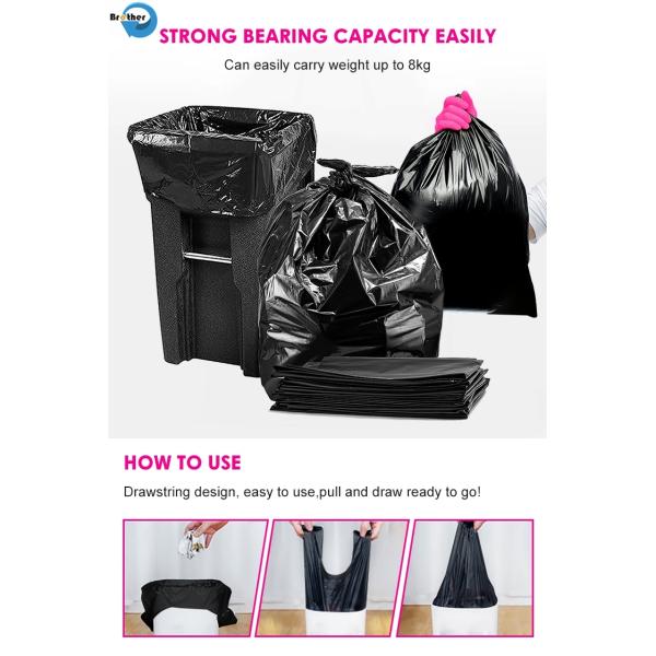 Black hdpe/ldpe drawtape/drawstring garbage bag/heavy duty trash bag